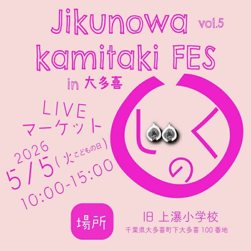 update.2026.2.13じくのわフェスvol.5開催日が2026年5月5日こどもの日祝日に旧上瀑小学校にて開催決定となりました。出店募集中です! [出店グループライン] じくのわ公式LINE(new) ご協力店さまへウェブサイトに御社名を掲載させていただきます(一口 1,000円 )協力店さま、ボランティアのご協力をいただける方は、下記お問い合わせフォームよりご連絡お待ちしております。 Contact お問い合わせ